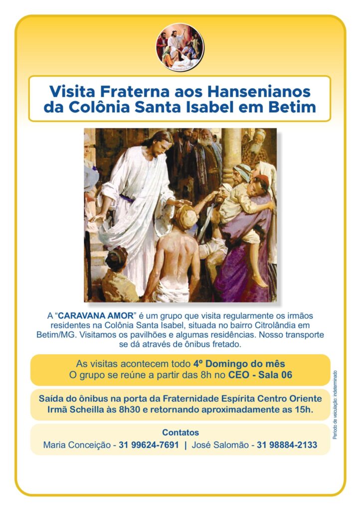 A Visita Fraterna acontece somente quando é recomendada pela Espiritualidade, através da Orientação Espiritual, não sendo possível solicitá-la em outras situações.